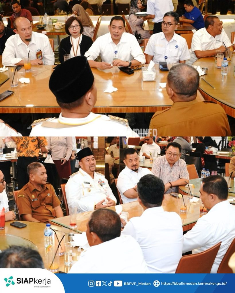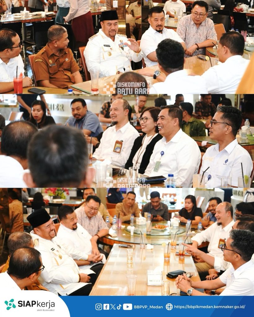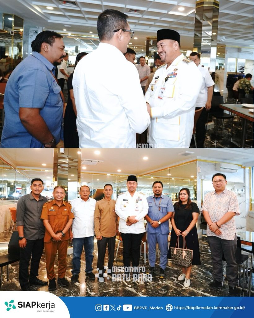 Kepala BBPVP Medan Bapak Faried Abdurrahman Nur Yuliono melaksanakan diskusi strategis bersama Bupati Kabupaten Batubara Bapak Baharuddin Siagian, Provinsi Sumatera Utara, dalam rangka merancang dan memperkuat kolaborasi pelatihan berbasis kebutuhan (demand driven training) yang selaras dengan perkembangan dunia usaha dan dunia industri (DUDI).