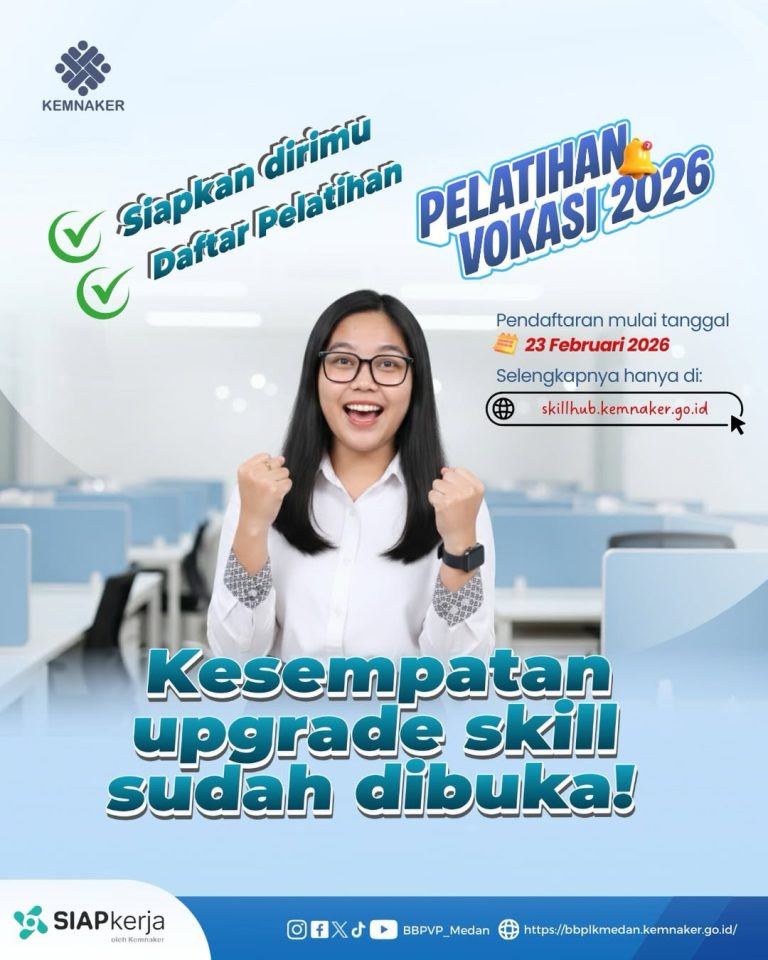 Pelatihan Vokasi BBPVP Medan sudah dibuka 🤩 Upgrade skill, naik level, siap jadi versi terbaik kamu di dunia kerja! 🙌🏻 Daftarnya gampang banget, langsung akses ke: Gratis, materinya up to date, dan pastinya worth it banget buat masa depan sanaknaker.…