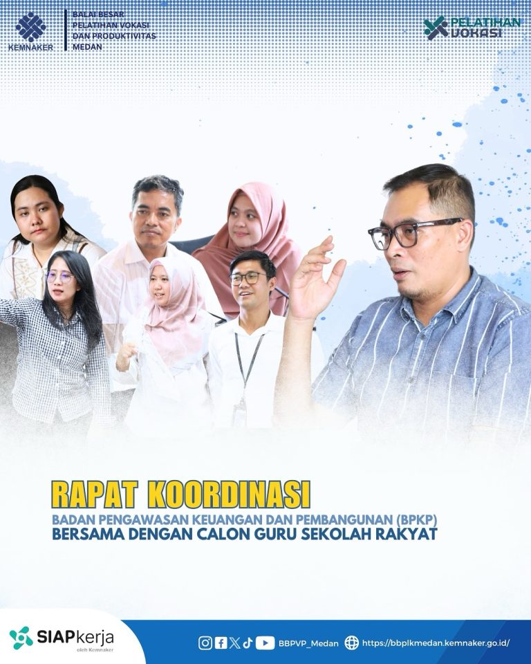 BBPVP Medan menerima kunjungan dari Badan Pengawasan Keuangan dan Pembangunan (BPKP) bersama dengan calon guru Sekolah Rakyat, dalam rangka memperkuat pemahaman, sinergi, serta memperluas wawasan terkait implementasi pelatihan vokasi dan produktivitas. Kehadiran calon guru Sekolah Rakyat menjadi momentum penting untuk…