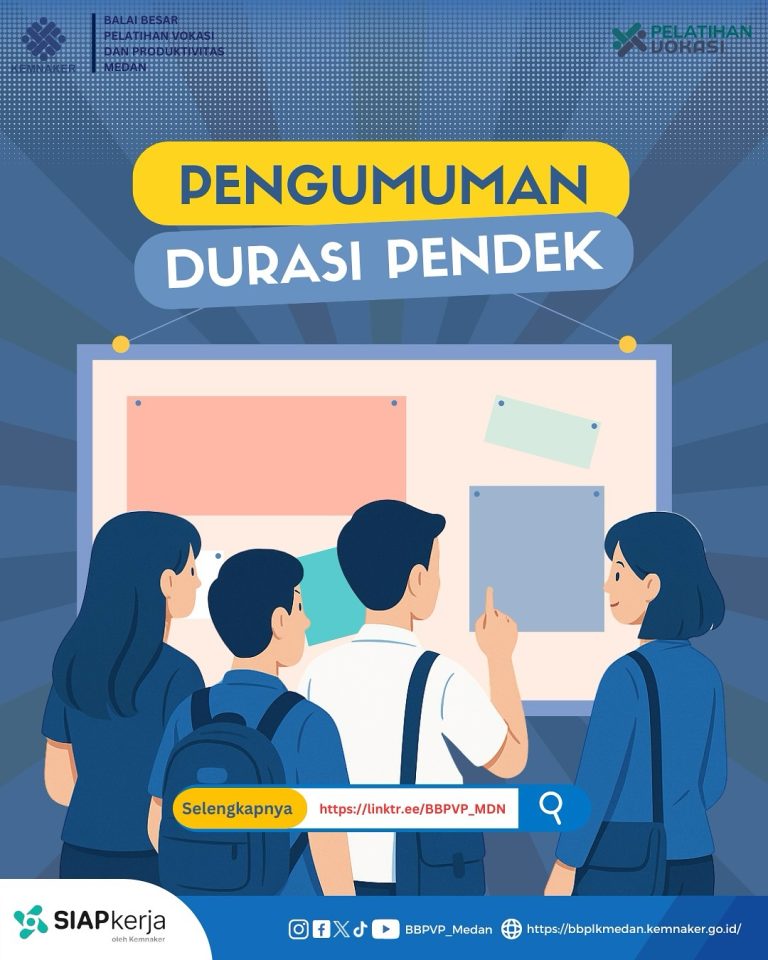 Pengumuman Hasil Seleksi Durasi Pendek Gelombang VII di BBPVP Medan 🤩 *Silahkan dibaca-baik hasil pengumumannya ya kawanaker ✨ 1. Peserta harap melakukan daftar ulang dengan mengupload berkas melalui link : Pelatihan sekaligus pembukaan dilaksanakan pada Selasa, 24 Juni 20253.…