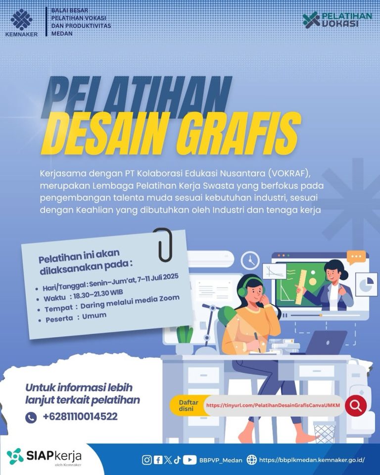 Dalam rangka mendukung peningkatan kompetensi tenaga kerja serta memperluas akses pelatihan vokasi bagi masyarakat, bersama ini kami informasikan bahwa PT Kolaborasi Edukasi Nusantara (VOKRAF), Lembaga Pelatihan Kerja Swasta yang berfokus pada pengembangan talenta muda sesuai kebutuhan industri, akan menyelenggarakan pelatihan…