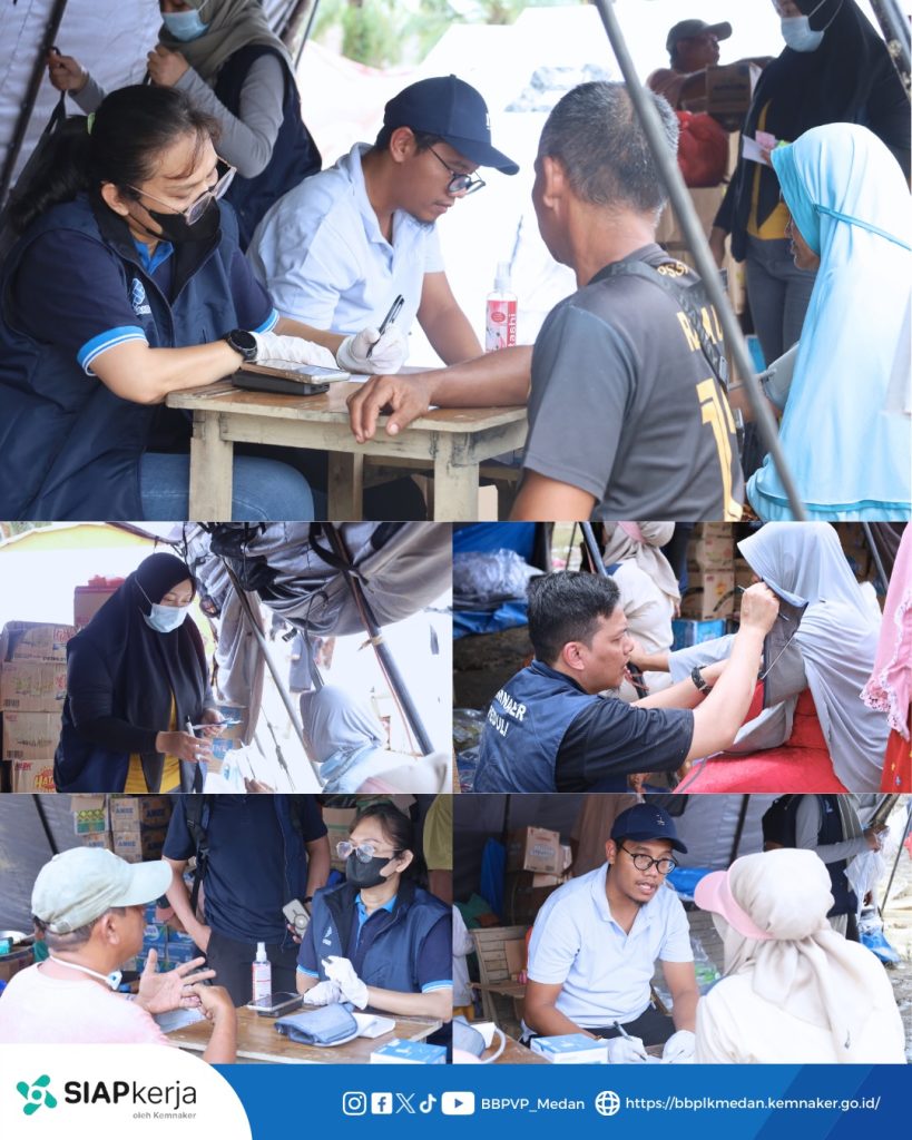 Relawan Kemnaker yang diterjunkan ke lokasi terdiri dari tenaga kesehatan, tenaga terampil dan profesional yang memberikan bantuan langsung di lapangan, diantaranya pemeriksaan kesehatan oleh dokter dan dukungan pendampingan psikososial bagi masyarakat terdampak
