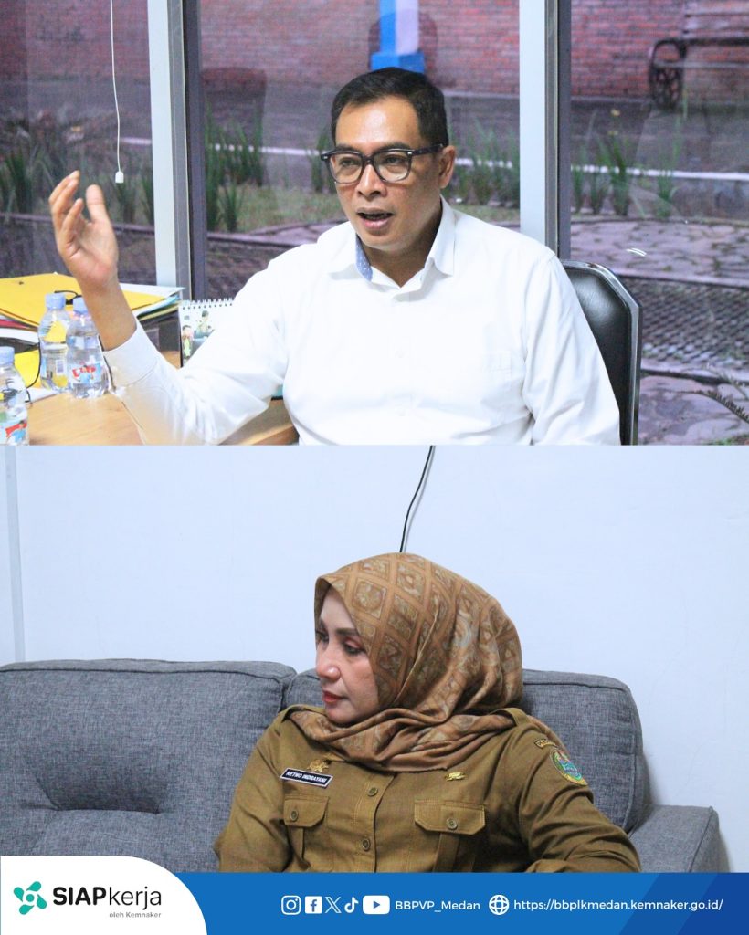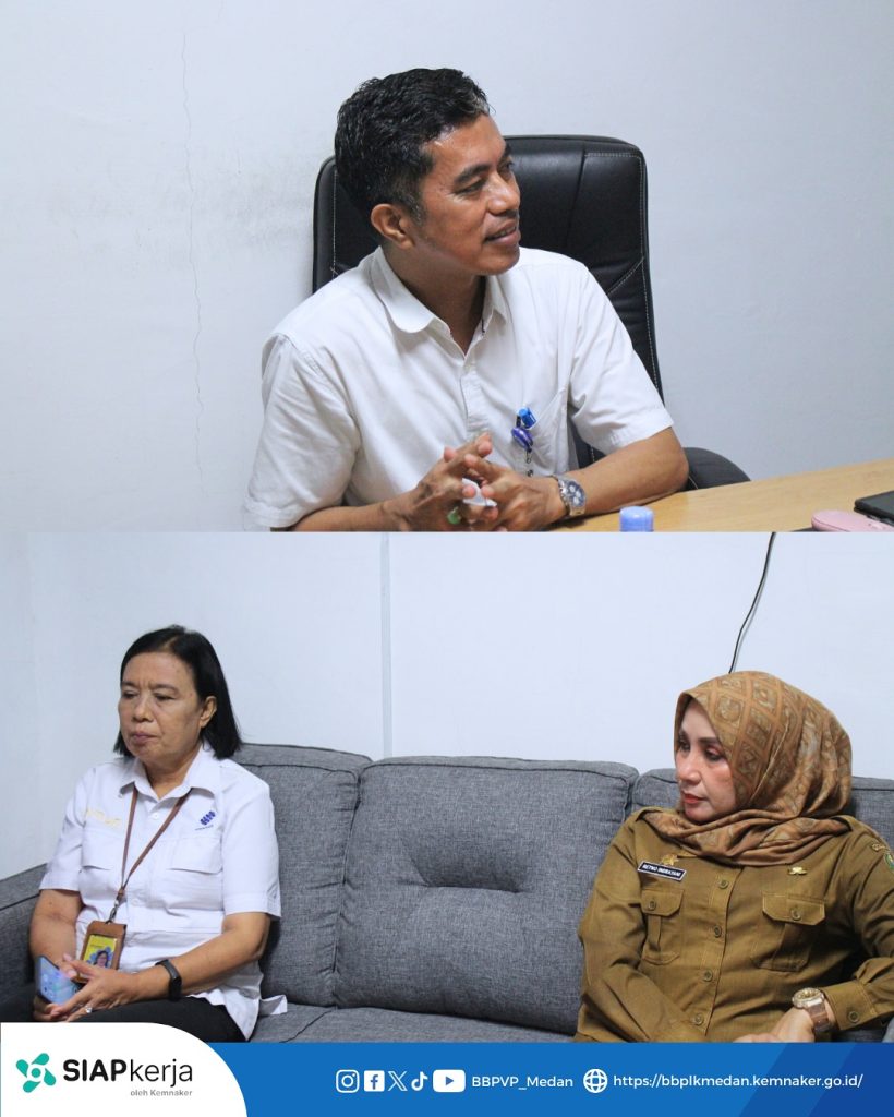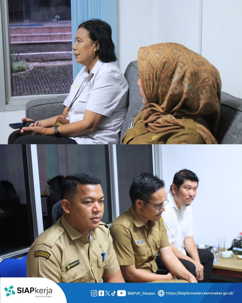 BBPVP Medan mendapat kunjungan kerja dari Dinas Tenaga Kerja Provinsi Sumatera Utara dalam rangka memperkuat koordinasi, sinergi, dan kolaborasi strategis dalam bidang pelatihan vokasi dan pengembangan sumber daya manusia.