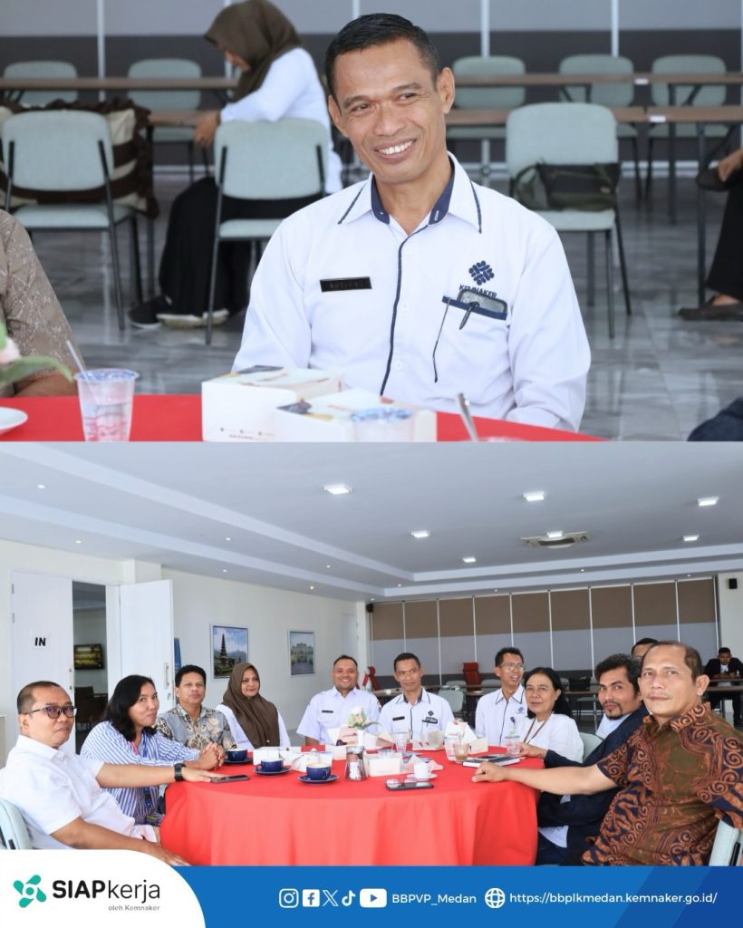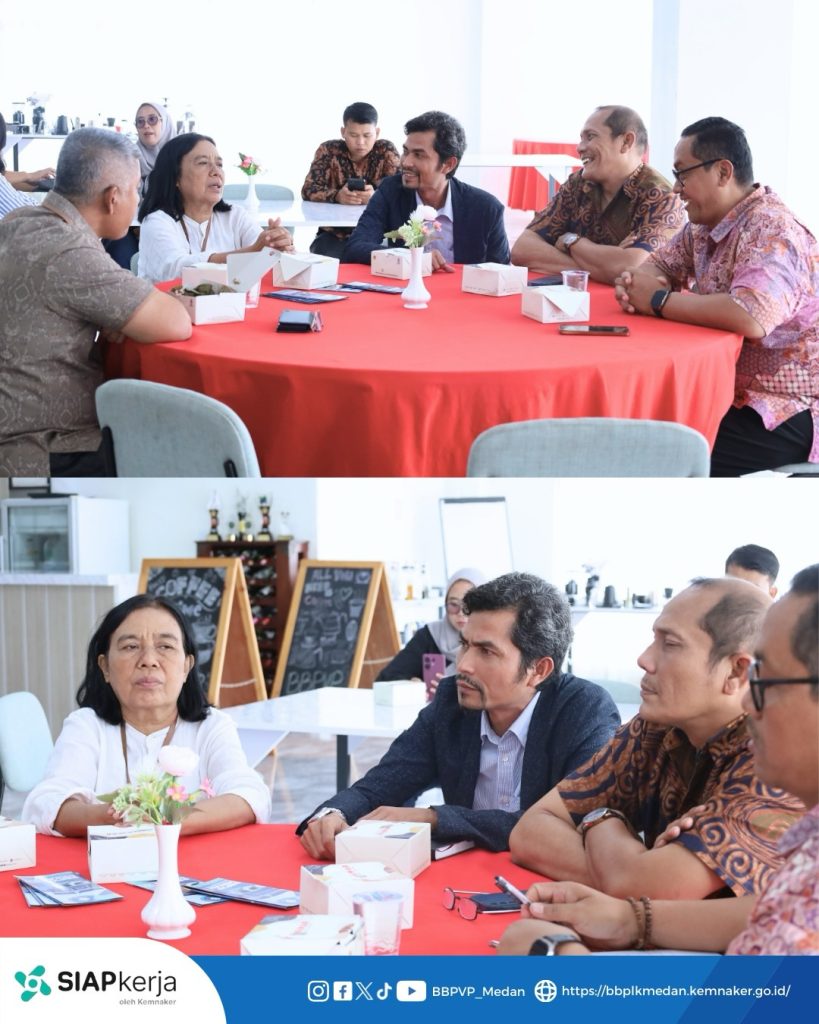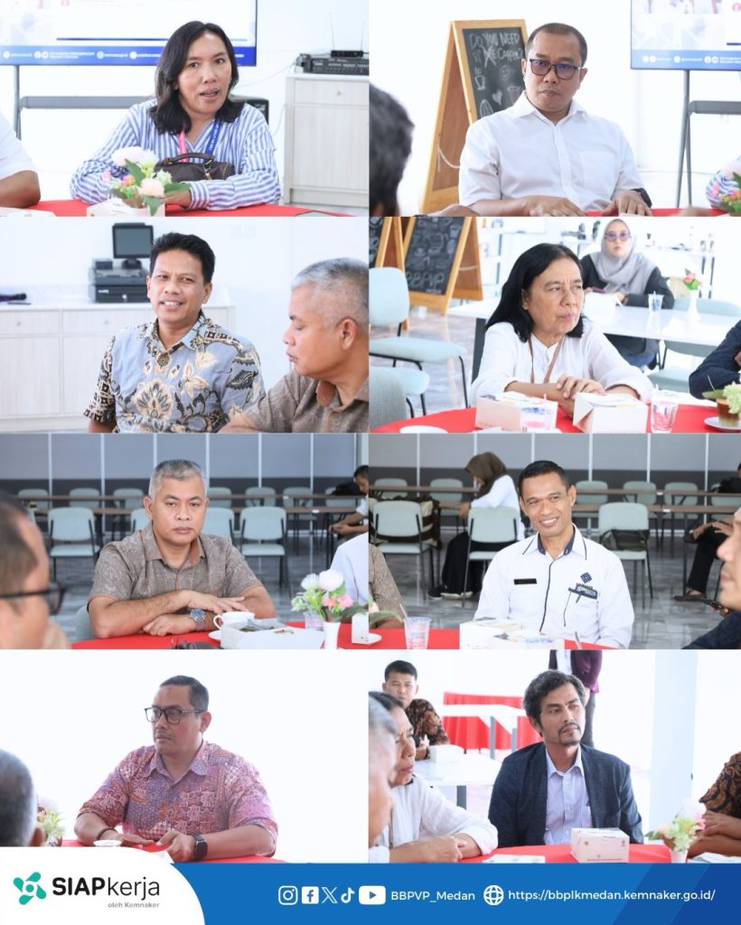 Dalam pertemuan ini, kedua belah pihak membahas berbagai isu penting antara lain strategi pengembangan pelatihan vokasi berbasis kompetensi yang relevan dengan kebutuhan industri serta peran BBPVP Medan dalam mendukung kebijakan ketenagakerjaan daerah
