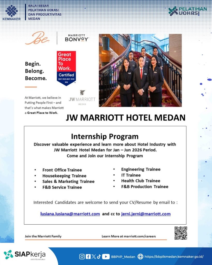 Discover valuable experience and learn more about Hotel Industry with JW Marriott Hotel Medan for Jan – Jun 2026 Period.