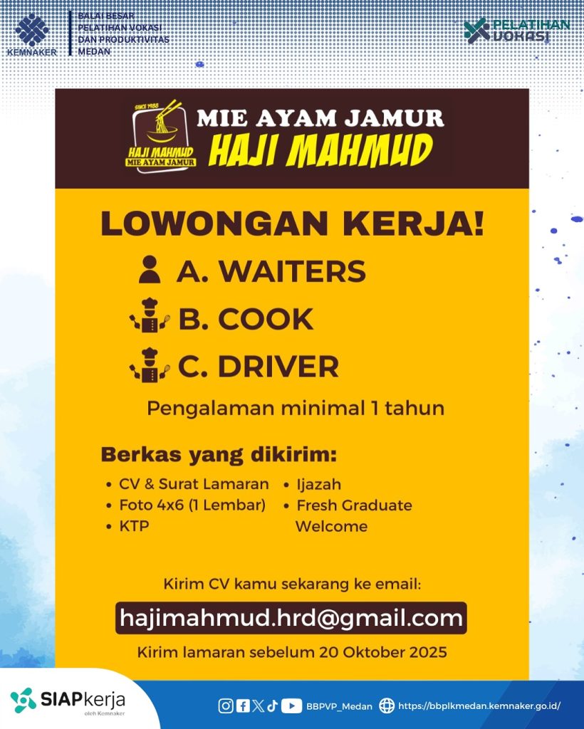 Mie Ayam Hj. Mahmud is hiring for :