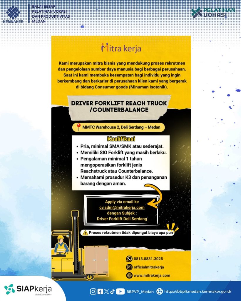 • DRIVER FORKLIFT REACH TRUCK / COUNTERBALANCE