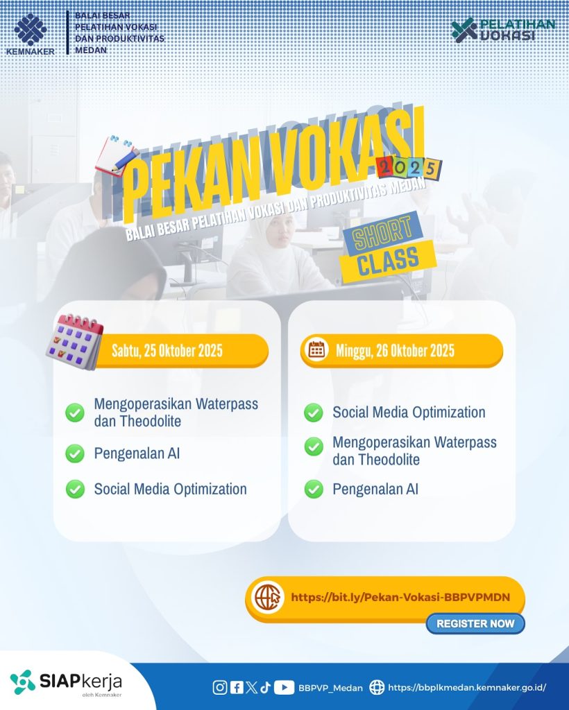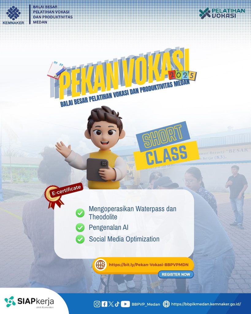 #PekanVokasi2025 #BBPVPMedan #VokasiUntukSemua #SkillSiapKerja #ShortClassBBPVP #DigitalMarketing #AI #SurveyTeknik #socialmediaoptimization