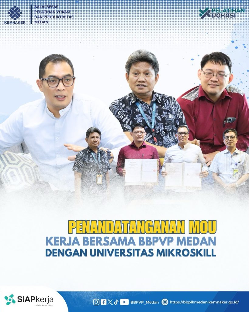 #Kemnaker #BBPVPMedan #UniversitasMikroskil #MoUKerjasama #PelatihanVokasi #PendidikanTinggi #SinergiDUDI #GenerasiKompeten #IndonesiaSiapKerja #KolaborasiUntukBangsa