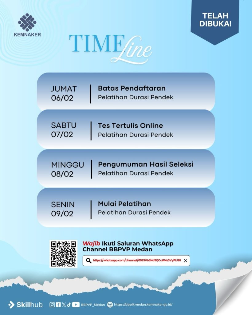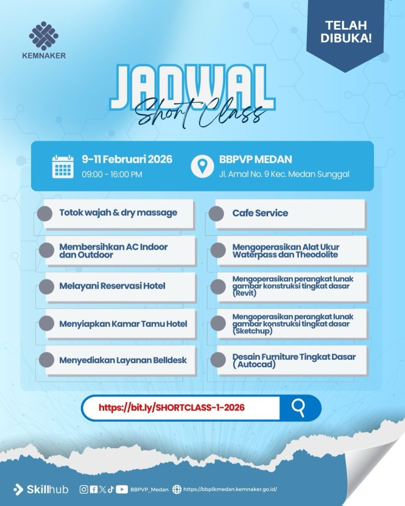 PENDAFTARAN SHORT CLASS PELATIHAN DURASI PENDEK BBPVP MEDAN 🤩