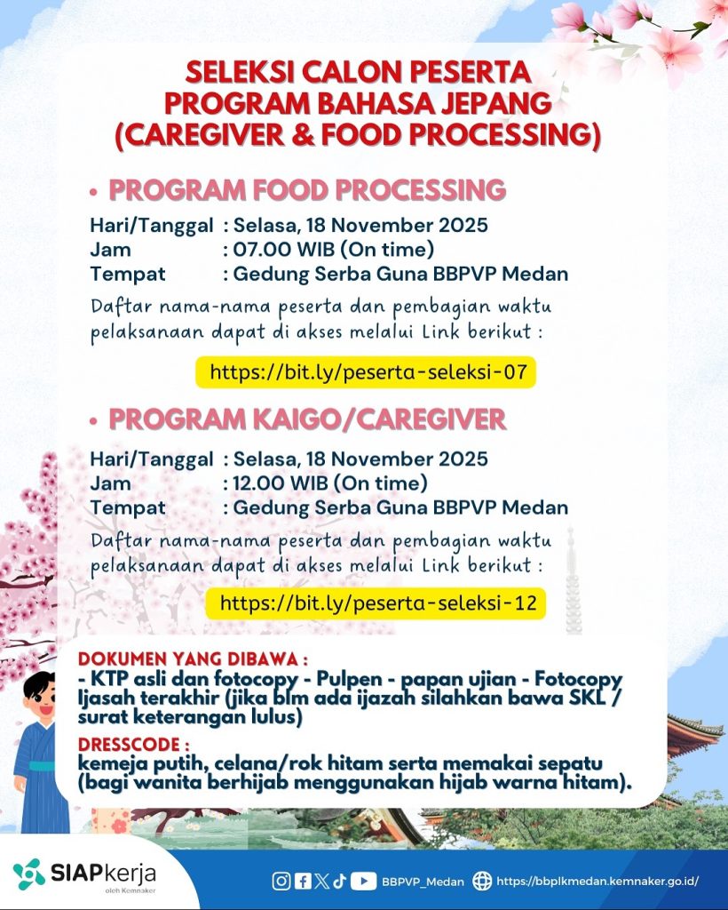 SELEKSI CALON PESERTA PROGRAM BAHASA JEPANG (CAREGIVER & FOOD PROCESSING)
