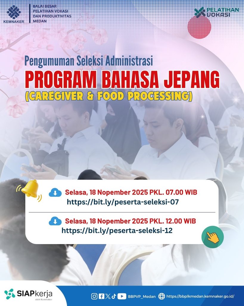 PENGUMUMAN SELEKSI CALON PESERTA PROGRAM BAHASA JEPANG (CAREGIVER & FOOD PROCESSING)