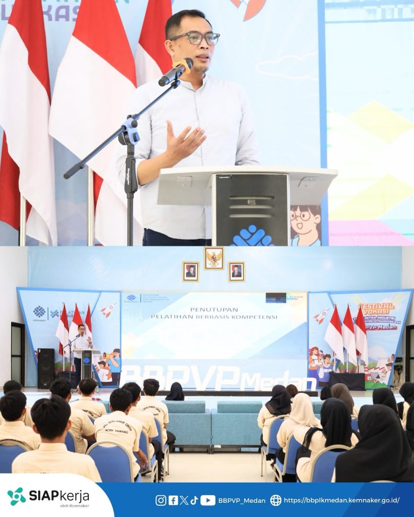 Balai Besar Pelatihan Vokasi dan Produktivitas (BBPVP) Medan melaksanakan Penutupan Program Pelatihan Berbasis Kompetensi (PBK) Barista, hasil kerja sama dengan Dinas Tenaga Kerja Kabupaten Aceh Tamiang, yang berlangsung di Gedung Serbaguna BBPVP Medan.