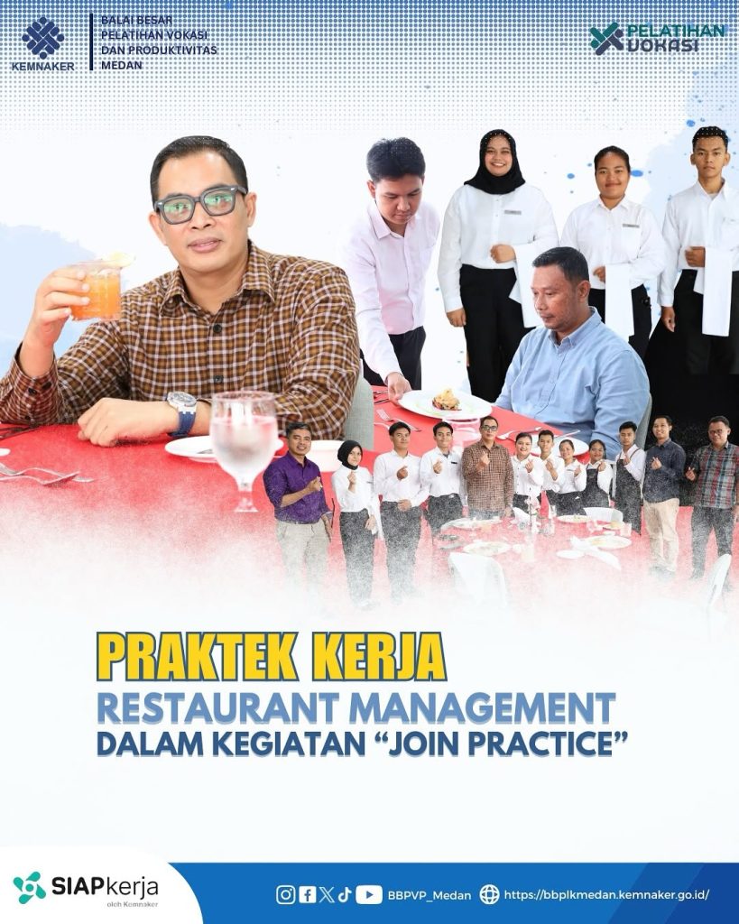 #BBPVPMedan #RestaurantManagement #JoinPractice #PelatihanBerbasisKompetensi #VokasiUntukIndonesia #Kemnaker #HospitalityTraining #SDMKompeten #KolaborasiDenganIndustri #BBPVPMedanBertransformasi
