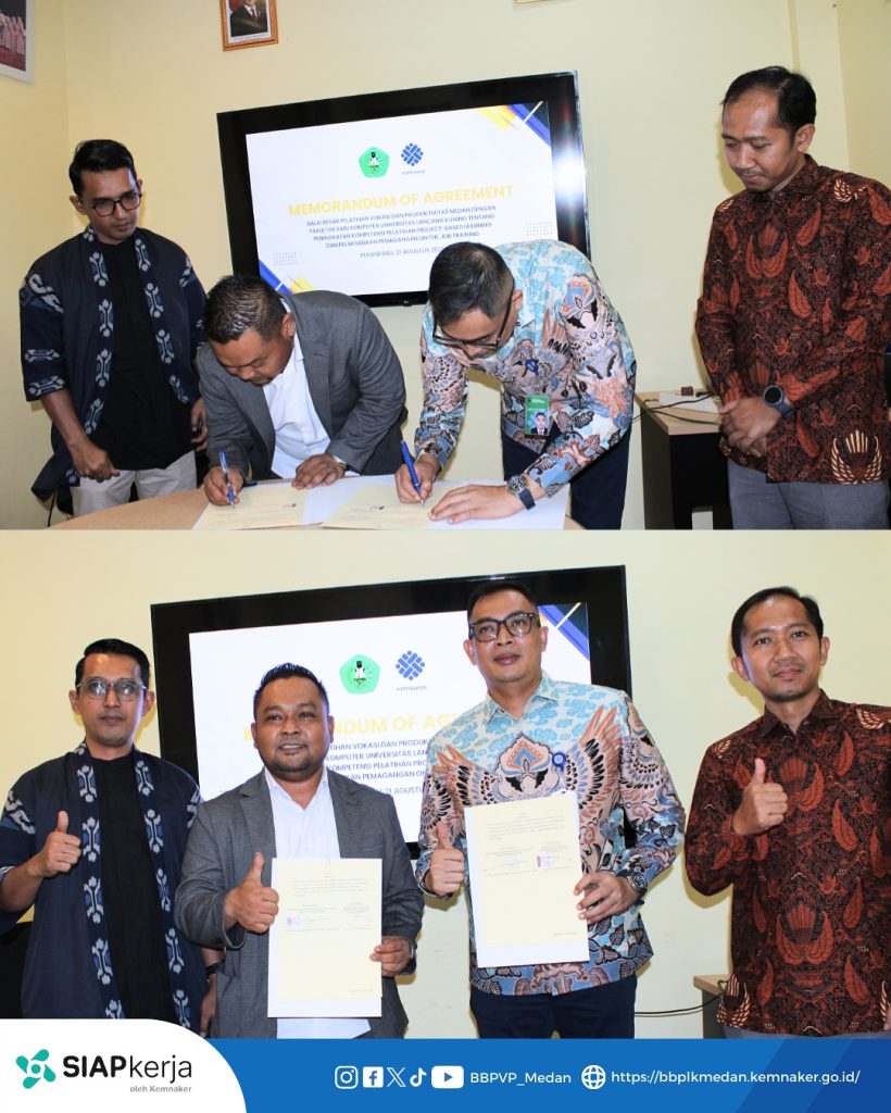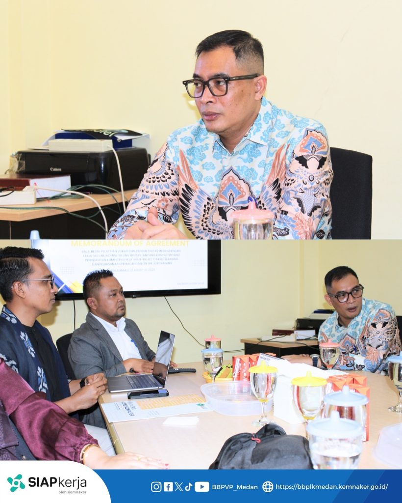 BBPVP Medan mewujudkan komitmen dalam peningkatan kapasitas SDM melalui kolaborasi strategis dengan Universitas Riau (UNRI), Universitas Lancang Kuning (Unilak), dan International Career College (ICC). Sinergi ini diimplementasikan dalam penyelenggaraan pelatihan vokasi, dimana masing-masing pihak berkontribusi secara optimal.