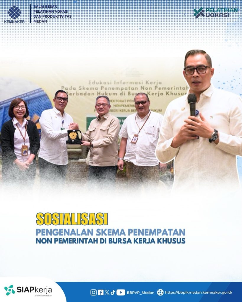 #Kemenaker #BBPVPMedan #BursaKerjaKhusus #BKK #PenempatanNonPemerintah #SosialisasiBKK #PelatihanVokasi #PenempatanTenagaKerja #VokasiKuatMenguatkanIndonesia #Ketenagakerjaan #SDMUnggul #ProduktifMandiri