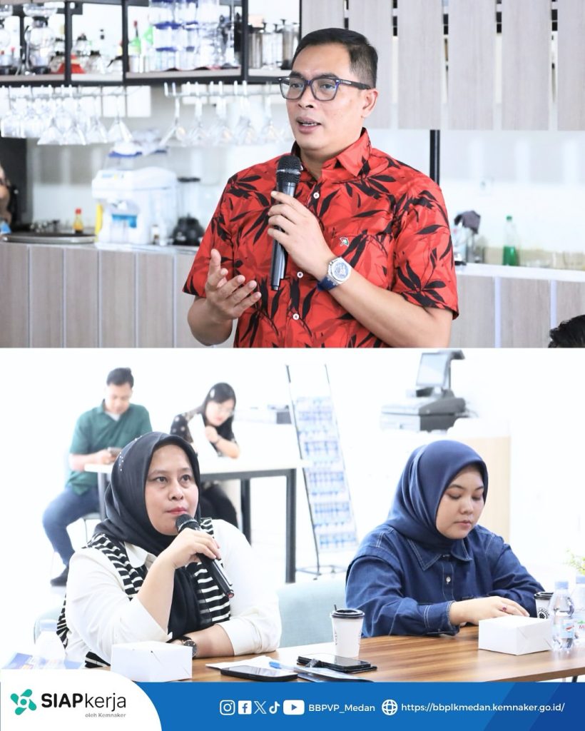 Dalam sambutannya, Kepala BBPVP Medan, Bapak Faried Abdurrahman Nur Yuliono menegaskan bahwa program ini dirancang untuk memperkuat keterampilan praktis peserta sekaligus memberikan pengalaman langsung di dunia kerja melalui OJT.