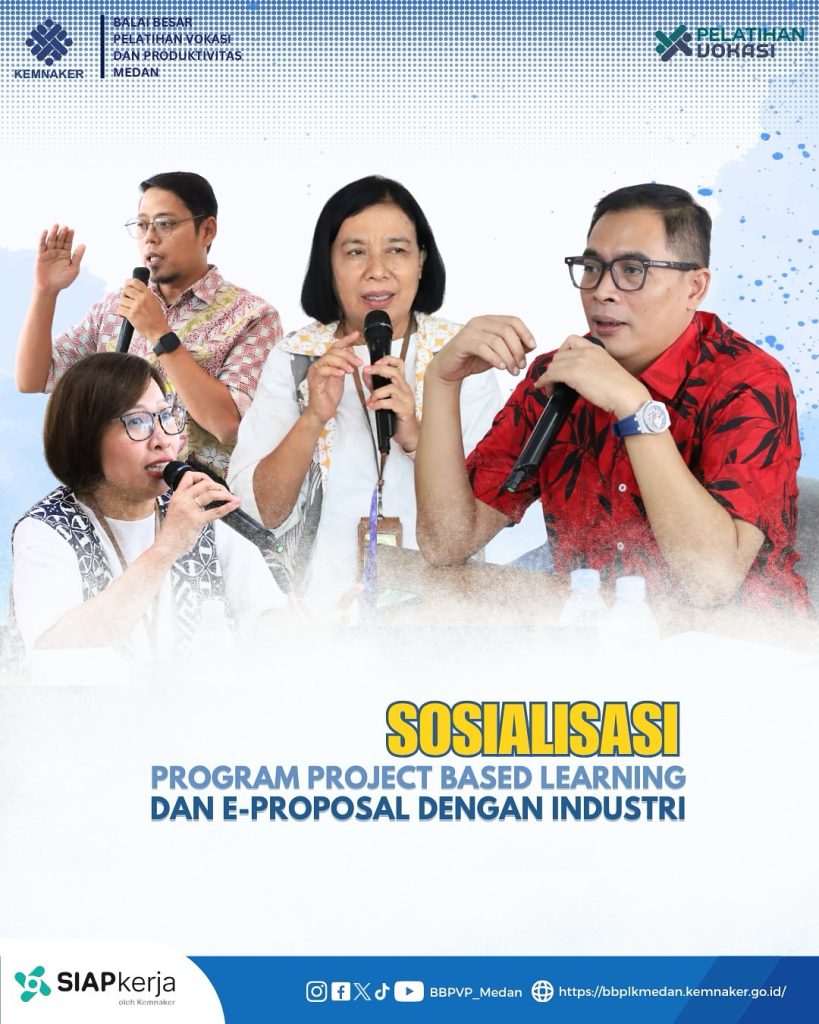 BBPVP Medan melaksanakan kegiatan Sosialisasi Program Project Based Learning (PBL) & E-Proposal sebagai langkah awal dalam mempersiapkan penempatan On the Job Training (OJT) bagi peserta pelatihan ke berbagai perusahaan mitra industri.