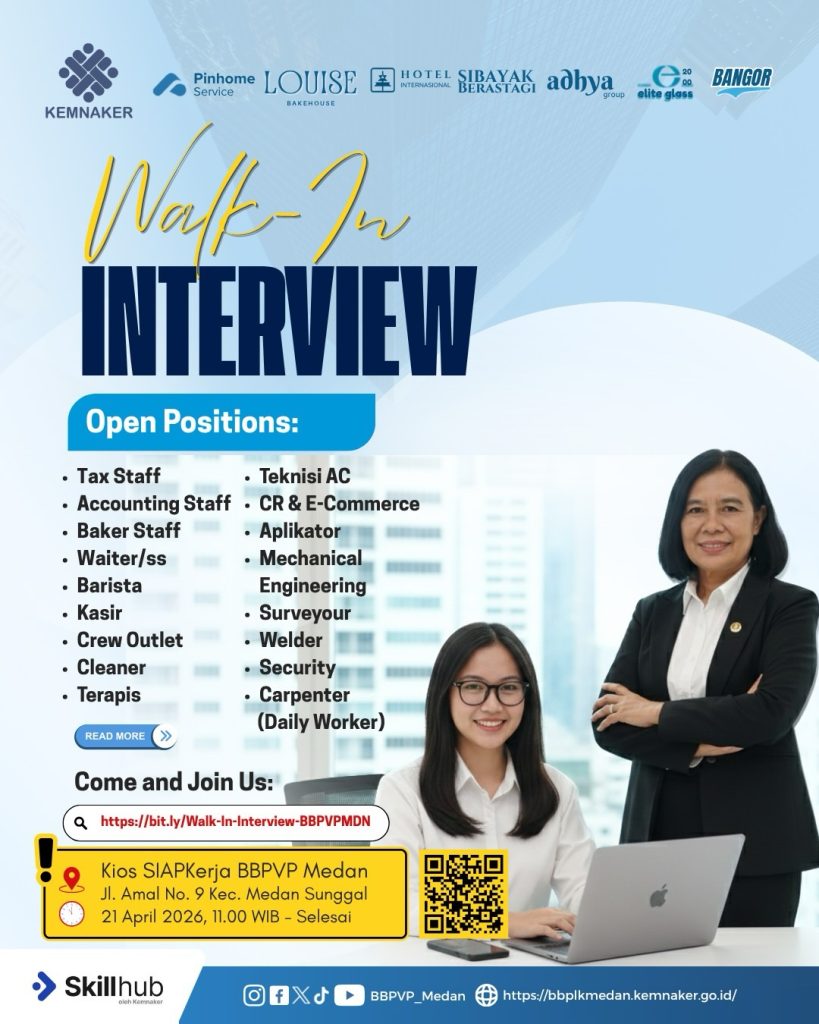 #Kemnaker #BBPVPMedan #InfoLoker #LowonganKerja #walkinterview